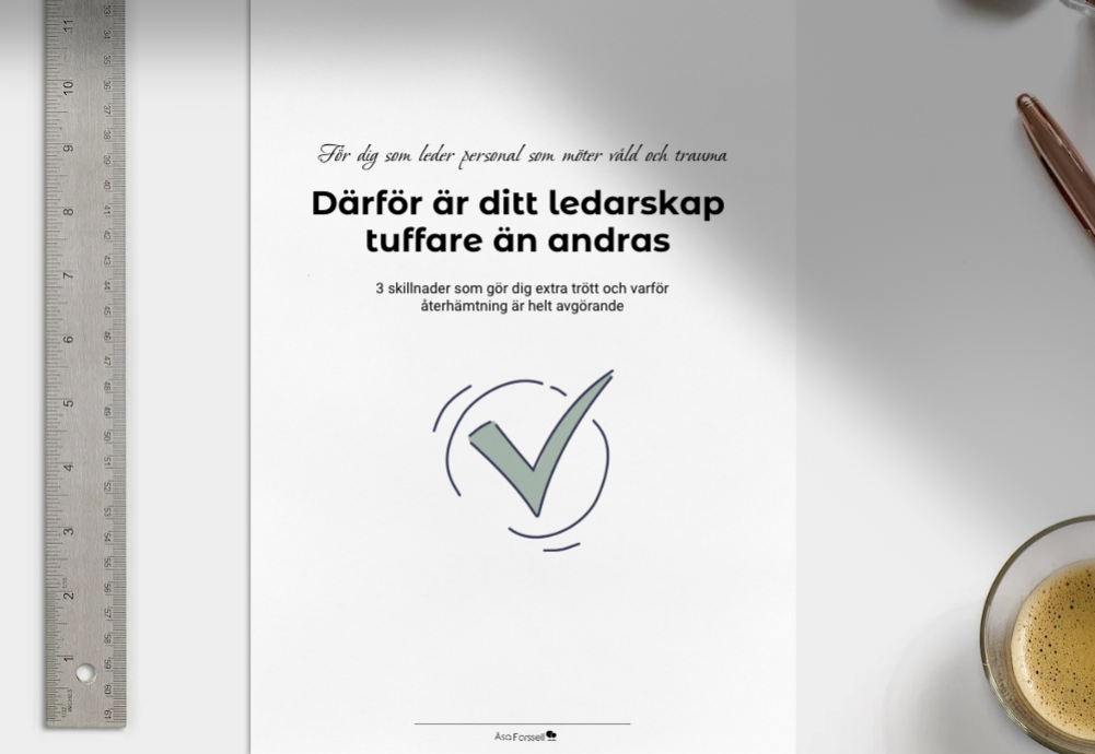 Kostnadsfri guide. Leder du medarbetare som dagligen möter våld och trauma? Då har du en mer utmanade vardag än många andra chefer. Ladda ner den här guiden där jag förklarar varför du känner dig helt slut efter en arbetsvecka och varför det är extra viktigt med din återhämtning.